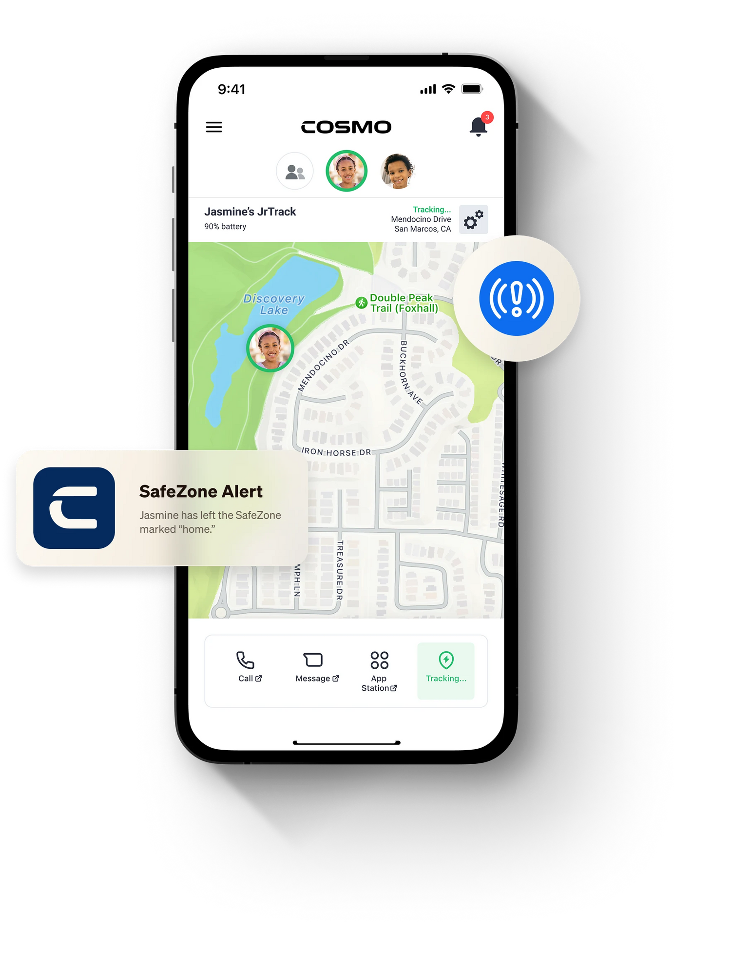 - SafeZone Alerts: Set custom GPS geofence zones and receive check-in alerts when your child enters or leaves.